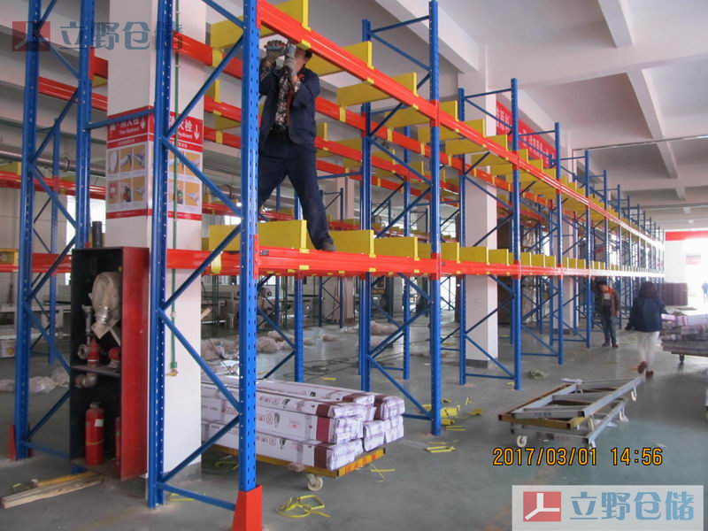 重型貨架,又稱橫梁式貨架,或稱貨位式貨架,屬于托盤貨架類,在國內(nèi)的各種倉儲(chǔ)貨架系統(tǒng)中最為常見一種貨架形式。以立柱片+橫梁形式的全組裝結(jié)構(gòu),結(jié)構(gòu)簡明有效。可根據(jù)存儲(chǔ)單元集裝設(shè)備的特性加裝隔檔、工字跨梁、井字跨梁、鋼層板(木層板)、網(wǎng)層板、倉儲(chǔ)籠導(dǎo)軌、豎向跨梁等附件。滿足不同單元集裝設(shè)備形式的貨物存儲(chǔ)。此類貨架在高位倉庫和超高位倉庫中應(yīng)用最多(自動(dòng)化立體倉庫中貨架大多用此類貨架)。