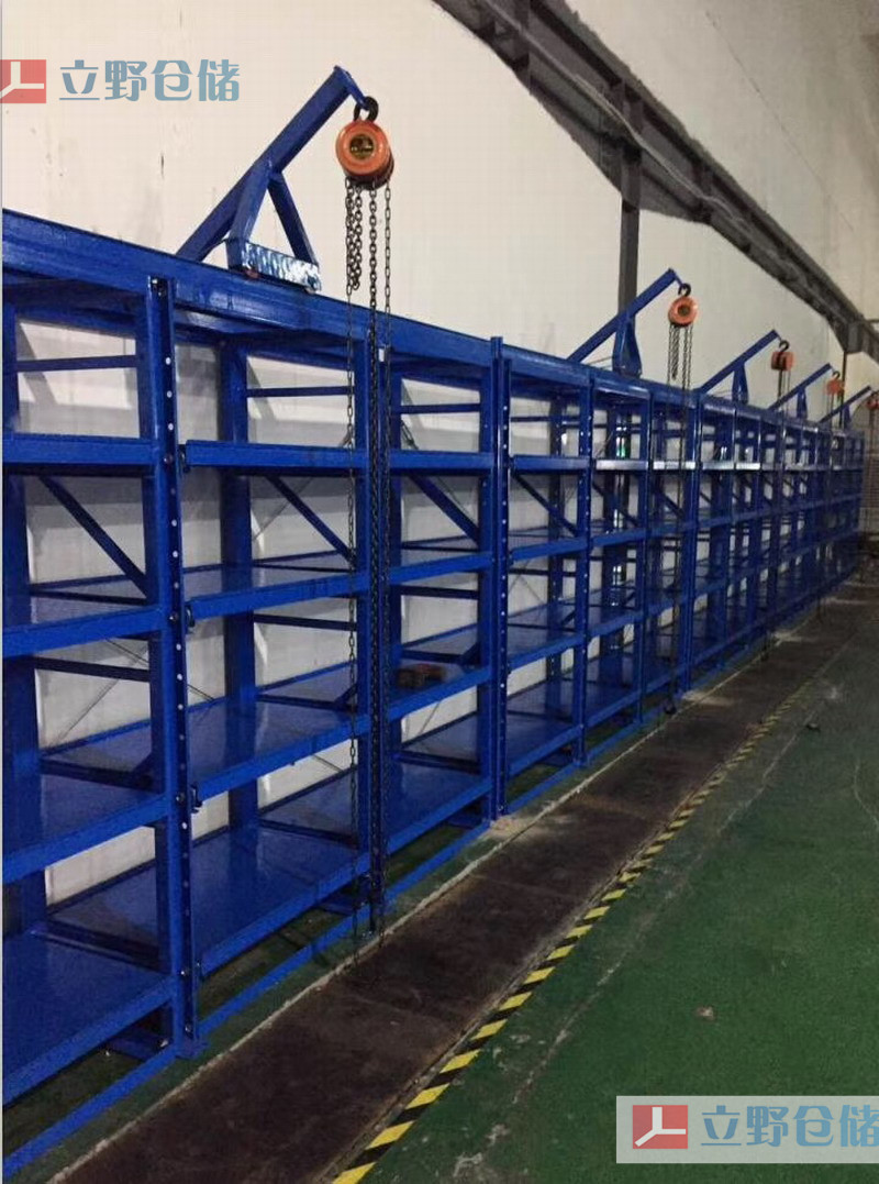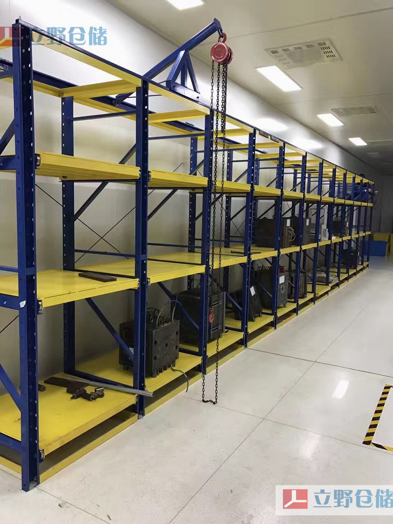 模具貨架又稱模具架或抽屜式貨架,主要存放各種模具物品,根據(jù)層載能力要求分為輕型模具貨架和重型模具貨架。貨架頂部可配置移動葫蘆車,以方便模具的起吊。