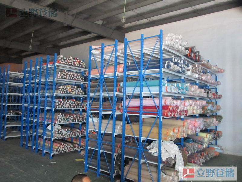 紡織面料貨架一般可采用兩立柱或三立柱樣式,根據卷狀面料的直徑和長度,來設計貨架的規格。一般情況下,常用的面料貨架都采用三立柱結構,橫斜撐采用可拆卸的結構,安裝方便,組合便捷。是眾多紡織面料企業倉庫最常用的產品。